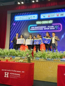 Ngày 28/4/2025 vừa qua, cuộc thi Bartender do Trường Đại học Quốc tế Hồng Bàng tổ chức đã diễn ra thành công tốt đẹp, thu hút đông đảo sinh viên và người yêu nghề pha chế. Góp phần vào sự thành công ấy không thể không nhắc đến sự hiện diện đặc biệt của Tiến sĩ Nguyễn Tấn Trung – chuyên gia đào tạo hàng đầu trong ngành F&B, người được vinh dự mời làm giám khảo chuyên môn cho cuộc thi năm nay.